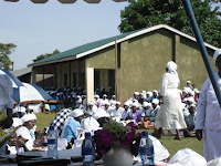 Janet and I had breakfast and were off to Chambiti, a local school, which was close by. We arrived a bit after 9:30 as she had to check on some things at the bank in Majengo. There were four large tents set up and a place was saved for us in the shelter. Women were already in all the seats and sitting in the grass. There were at least 9 buses with many vans and cars on the grounds. Dorothy Selebwa began the program soon after we arrived. Opening prayers were offered by Marian Baker and Norah Musundi.